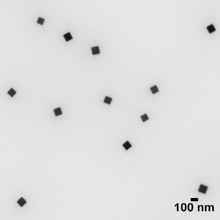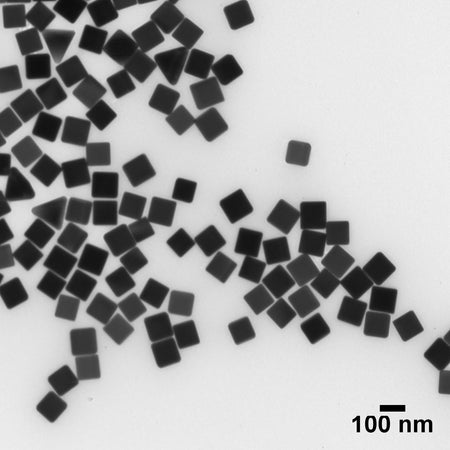 100 nm silver nanocubes combine distinctive anisotropic morphology and unique plasmonic optical properties. These nanoparticles are useful in a broad range of applications from biosensors, sensing, imaging, SERS, metamaterials, and more.