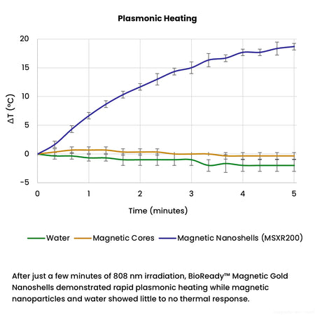 200 nm magnetic gold nanoshells combine the plasmonic properties of gold nanoparticles with the separation capability of a magnetic bead. The magnetic core allows for easy manipulation such as separation or concentration and enhances particle utility for a variety of therapeutic and diagnostic applications such as biosensors, lateral flow assays, SERS, drug delivery, and photothermal therapy.