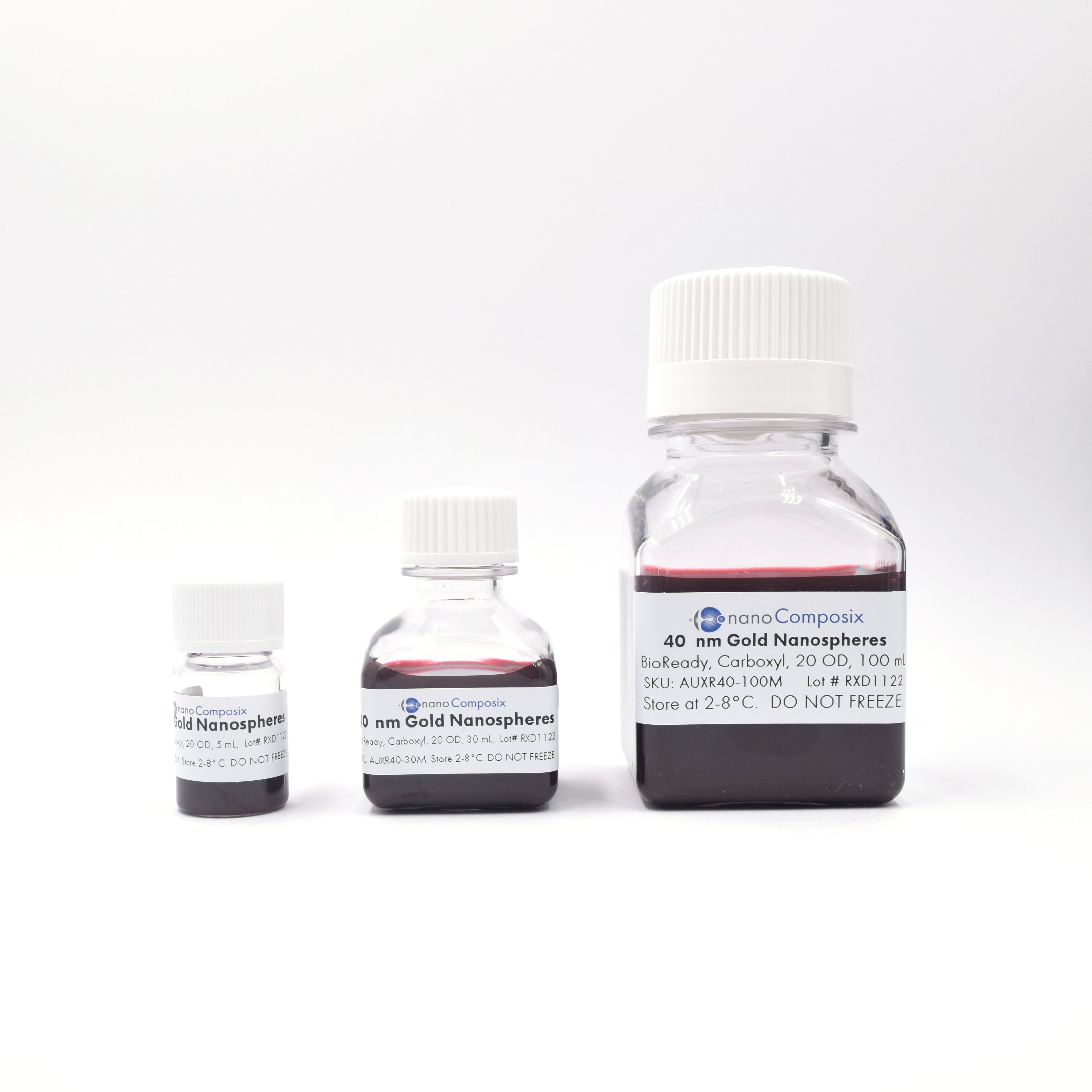 40 nm spherical gold nanoparticles for conjugation are useful in applications such as immunodiagnostics, lateral flow assays, nanomedicine, drug delivery, and biosensors.