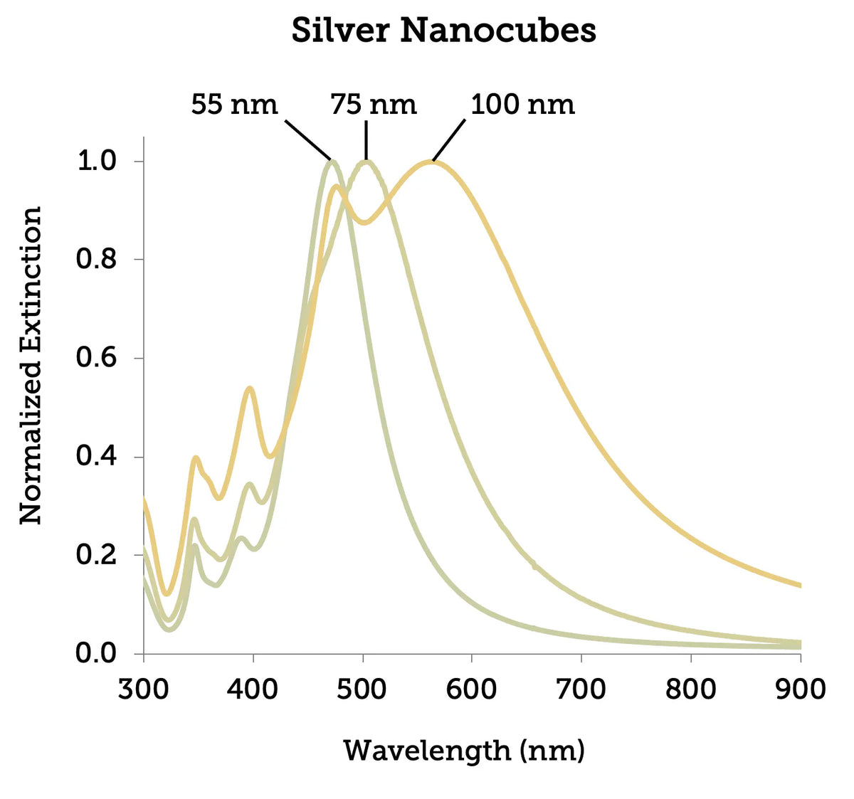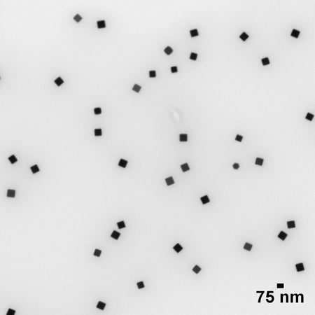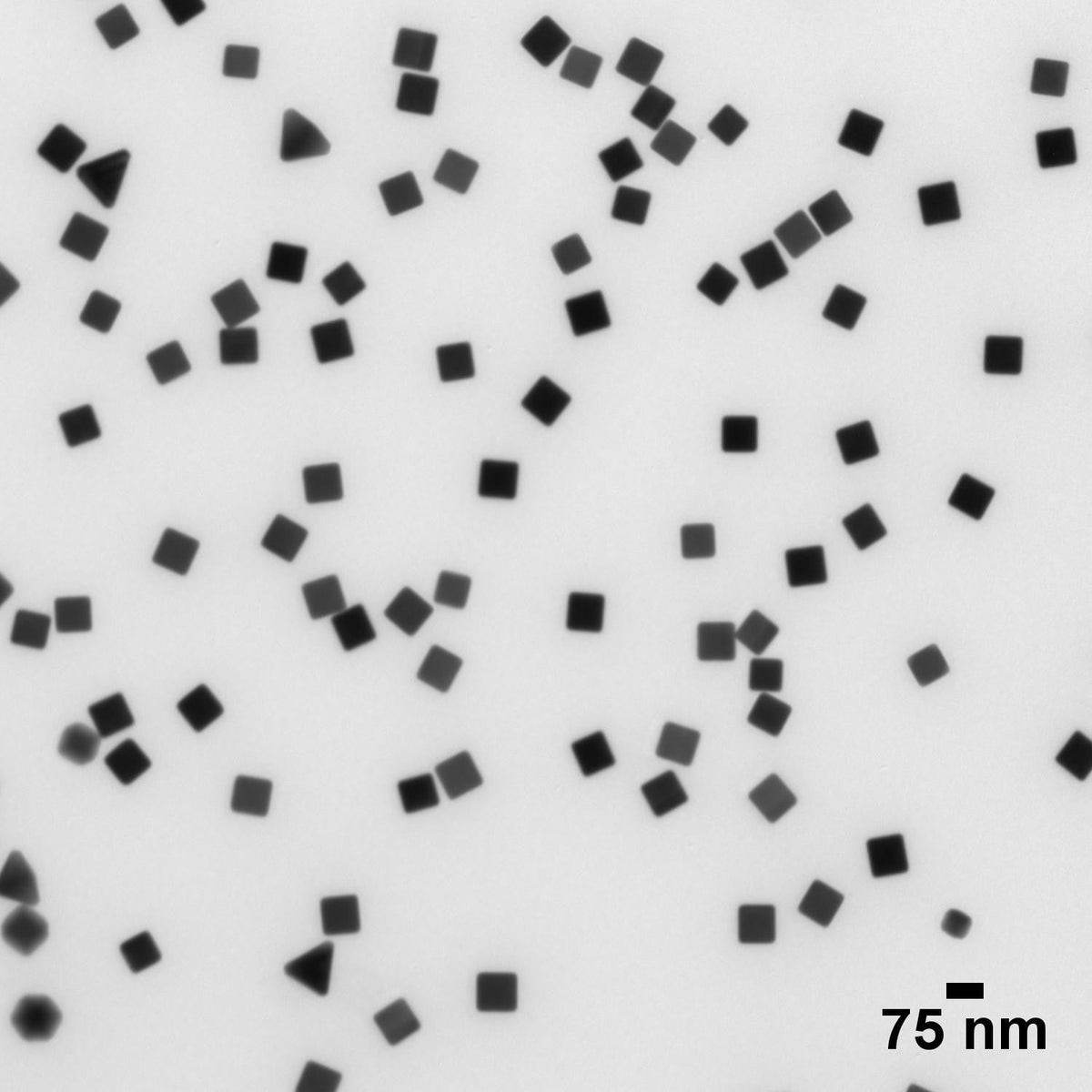 75 nm silver nanocubes combine distinctive anisotropic morphology and unique plasmonic optical properties. These nanoparticles are useful in a broad range of applications from biosensors, sensing, imaging, SERS, metamaterials, and more.