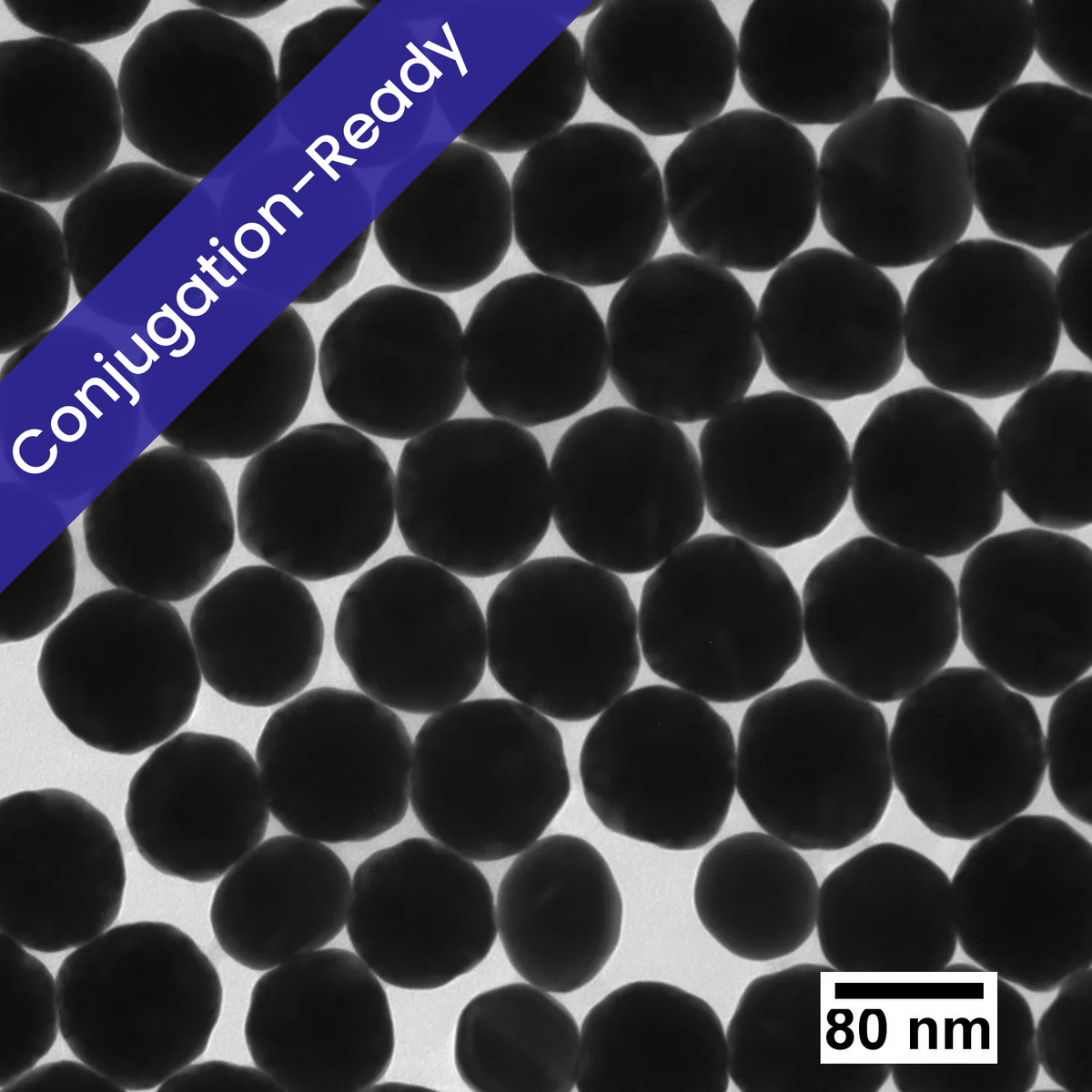 80 nm spherical gold nanoparticles for conjugation are useful in applications such as immunodiagnostics, lateral flow assays, nanomedicine, drug delivery, and biosensors.