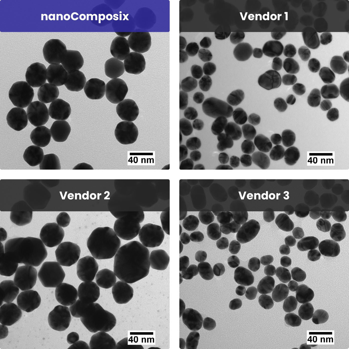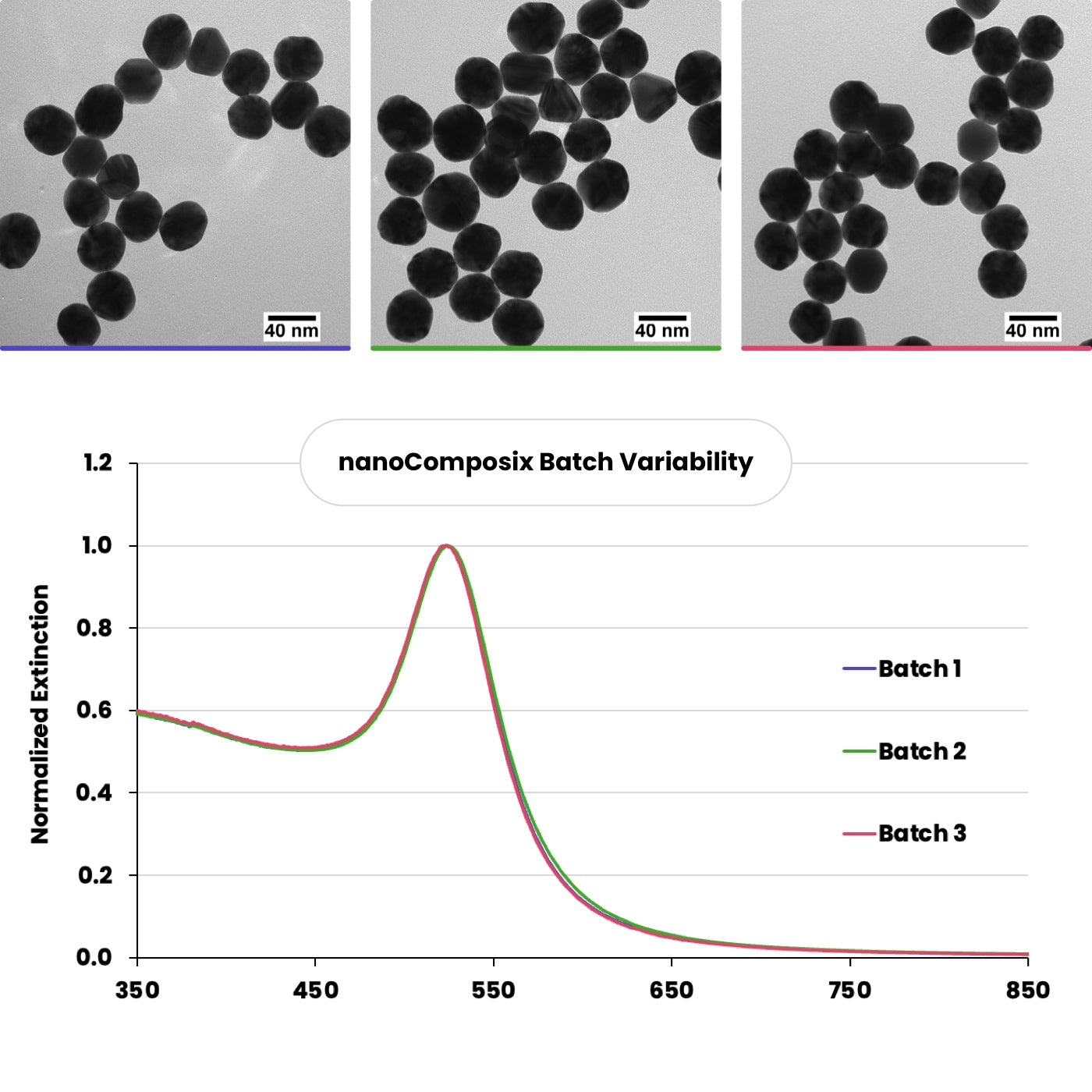 This service provides a focused, side-by-side characterization of your colloidal gold nanoparticle or conjugate compared to a nanoComposix BioReady reference material. It is designed for diagnostic assay developers who need objective data to understand gold particle behavior, assess supplier risk, or troubleshoot performance issues. Nanoparticle characterization data generated through this service supports early-stage verification, validation, and risk assessment activities.