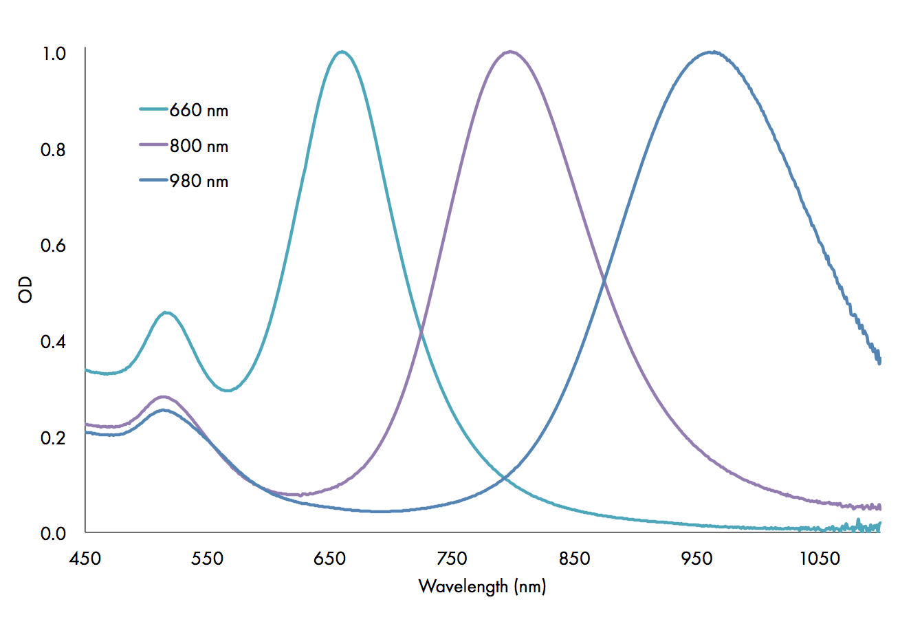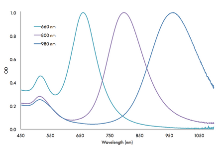 | Peak wavelength (> 90% peak absorbance) | 808 nm | 808 nm | 808 nm |